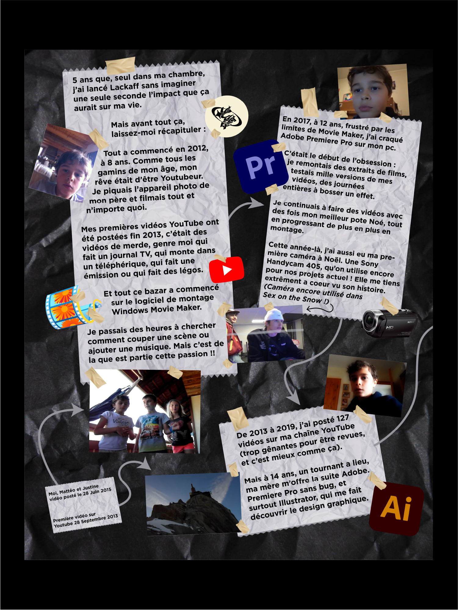 J’y ai passé facilement 2 à 3 mois, le temps d’écrire les textes pour que ce soit à la fois cool et intéressant, sans que ça fasse trop le mec qui se la raconte (j'en suis un). Retrouver toutes les photos, les screenshots d’anciennes vidéos, les archives, c’était parfois un vrai enfer aussi, mais c’était pour la bonne cause, 5 ans, ça se fête !