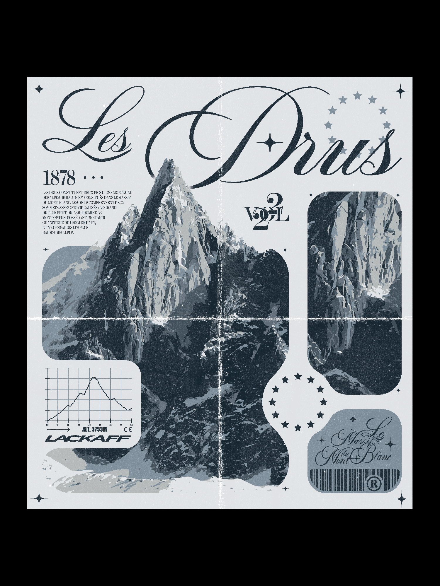 Les Drus Part.II est une réédition d’un volume datant d'Avril 2024. J’en parle déjà dans la description de la Part.I, mais ce pic est d’une beauté tellement incroyable qu’il est quasiment impossible à retranscrire sur un poster ou un écran. C’est vraiment l’une de mes montagnes préférées, et je trouvais qu’elle méritait pleinement cette réédition. Pour moi, c’est l’un des meilleurs designs que j’ai réalisés à ce jour.