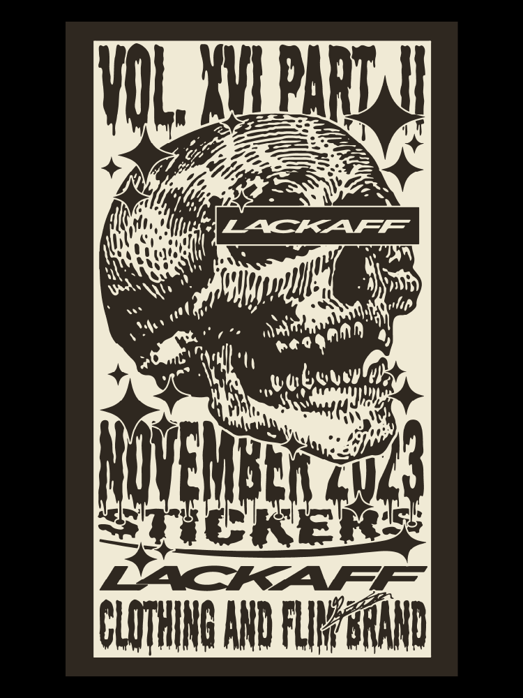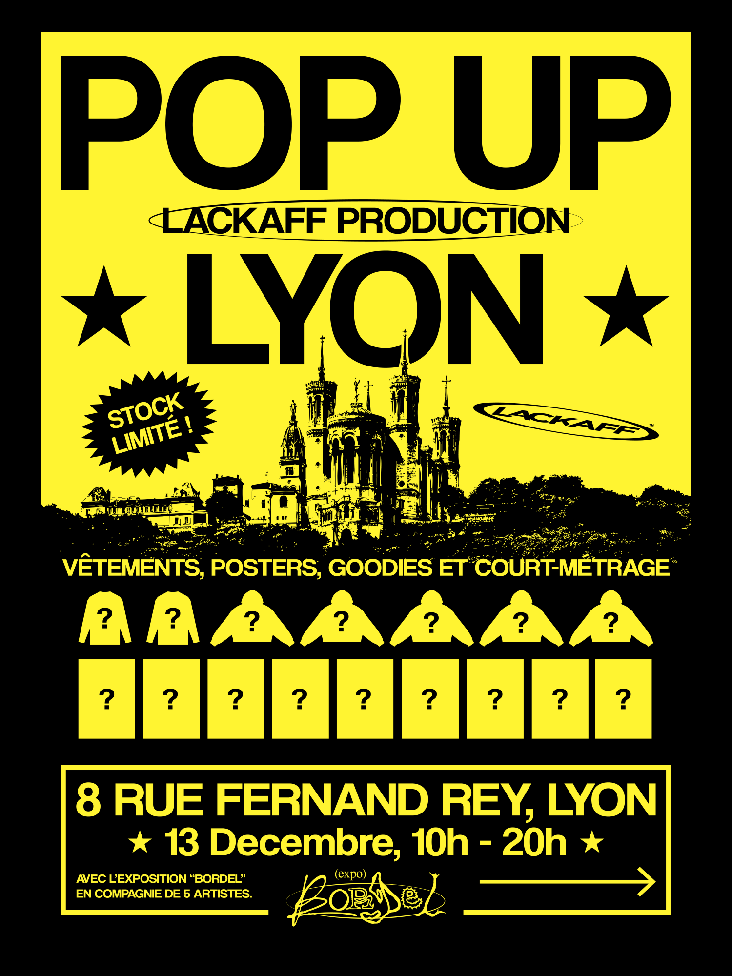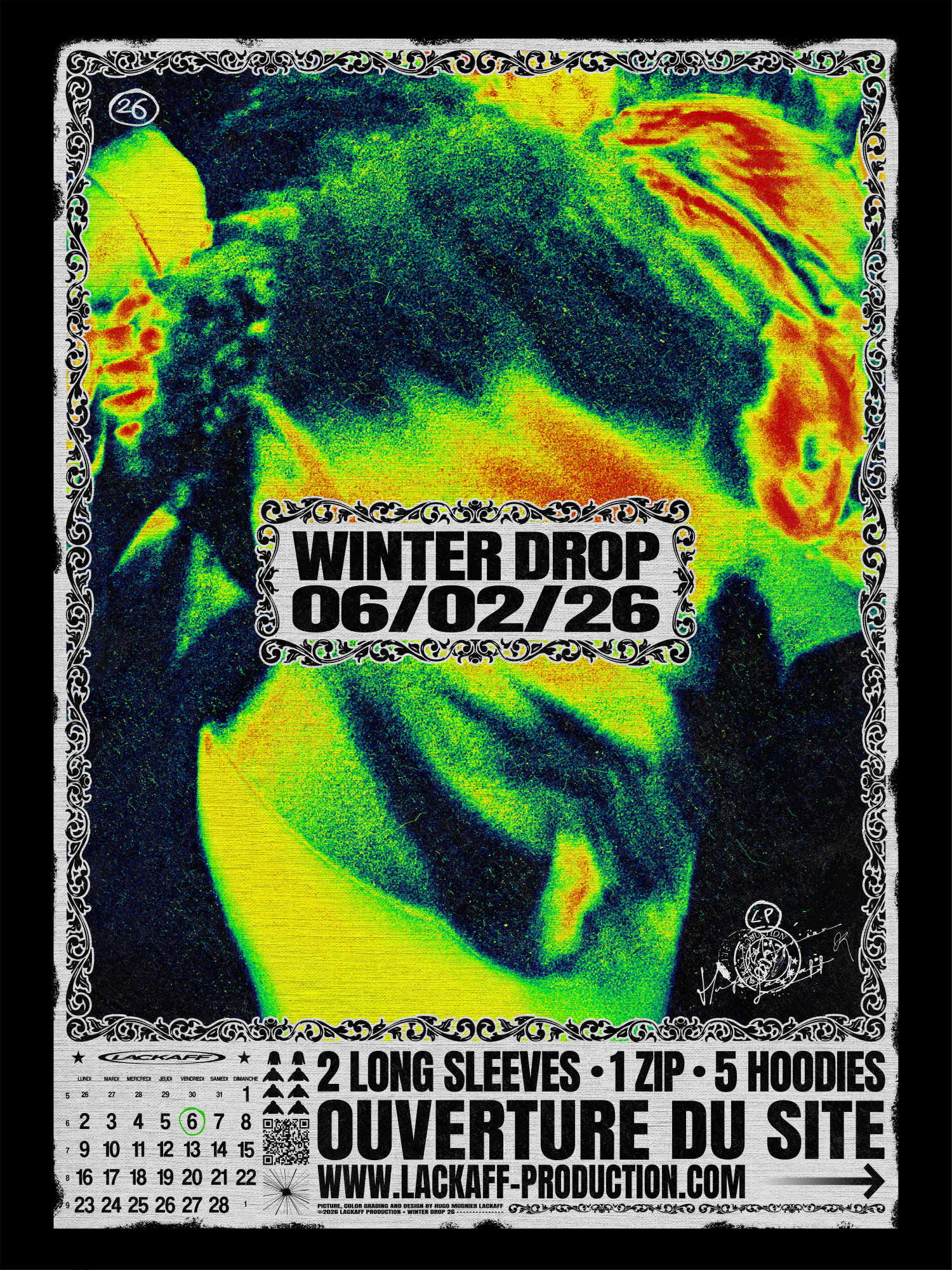 MAIS. Un petit détail nous a un peu titillés. On devait avoir le WINTER DROP en avant-première pour l’événement : une soixantaine de vêtements. C’est littéralement le moment où on a le plus investi dans Lackaff. Entre les vêtements et les posters, on en avait pour plus de 3 000 €. Les vêtements sont restés bloqués à la douane. Ils ne sont jamais arrivés le jour de l’événement. Bon… il y avait quand même de super posters.