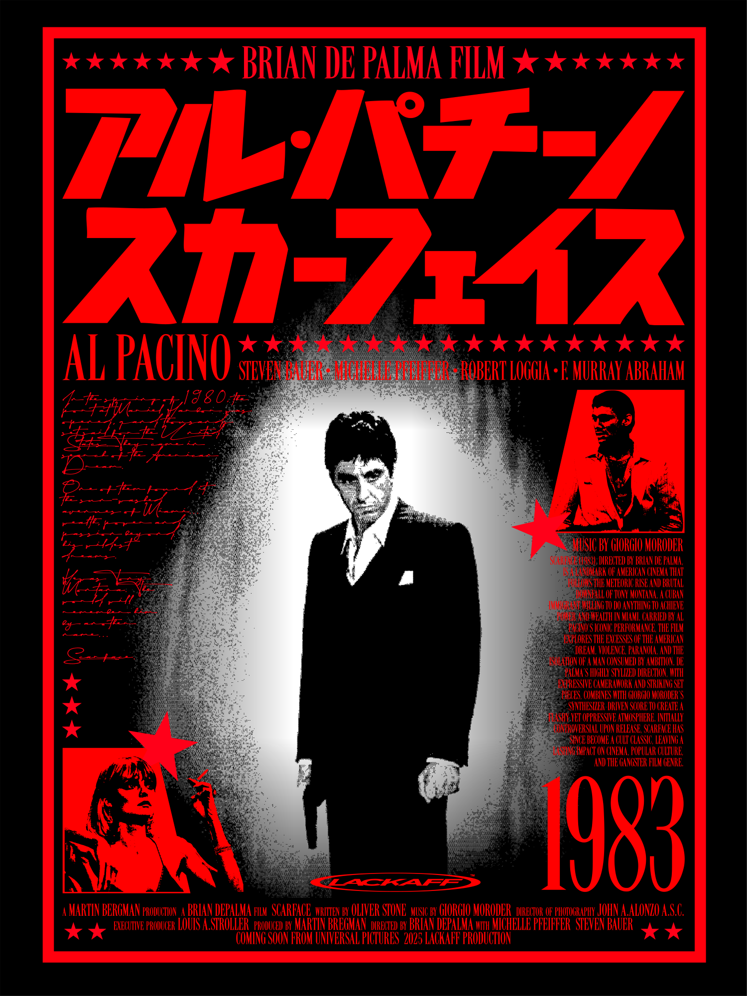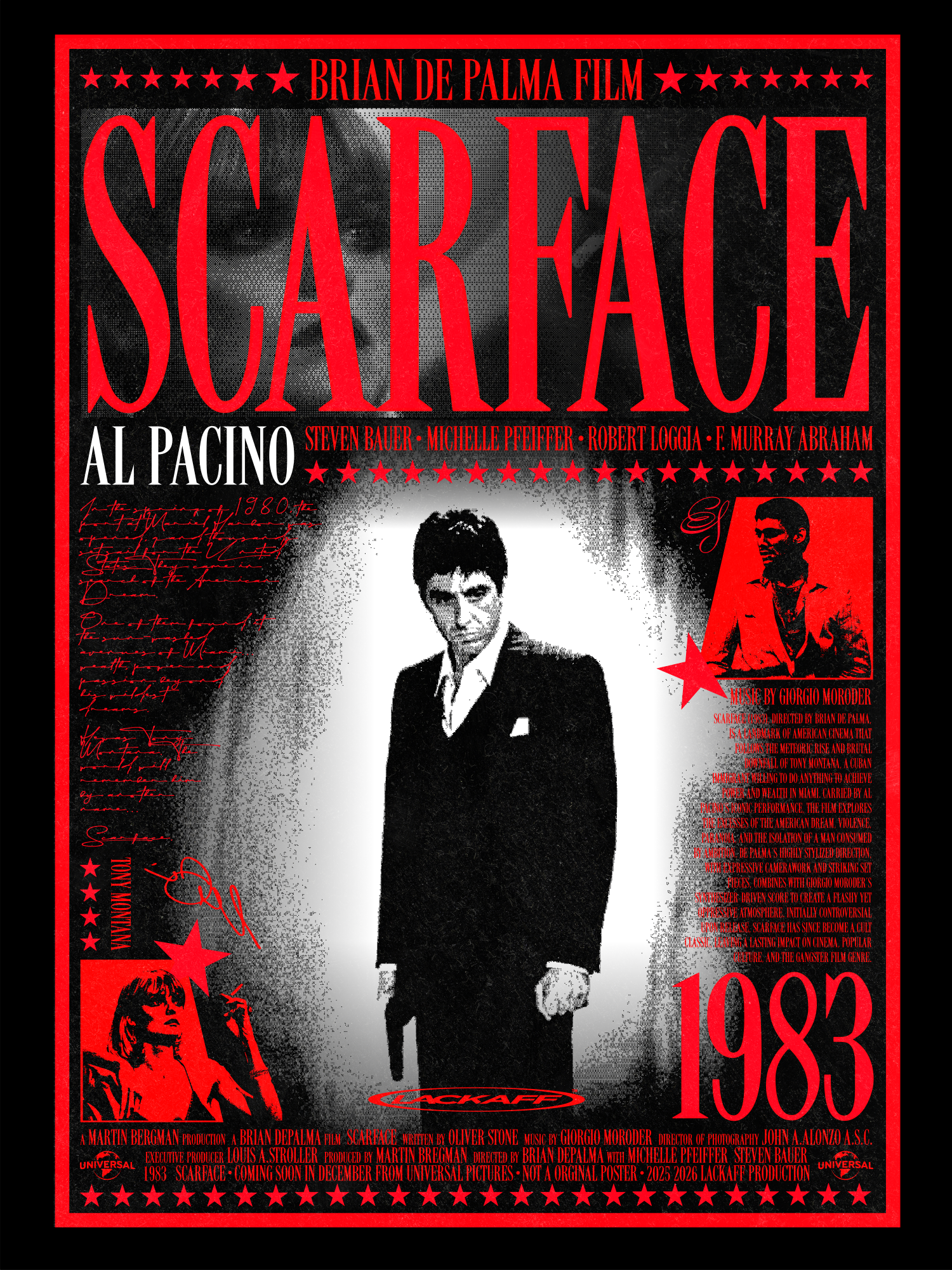 Fin novembre, j’ai revu Scarface de De Palma, et j’ai eu des visions pendant le film pour cette cover principale… et les autres ont suivi naturellement ! J’adore le mood de ce film, tellement marquant. Hugo