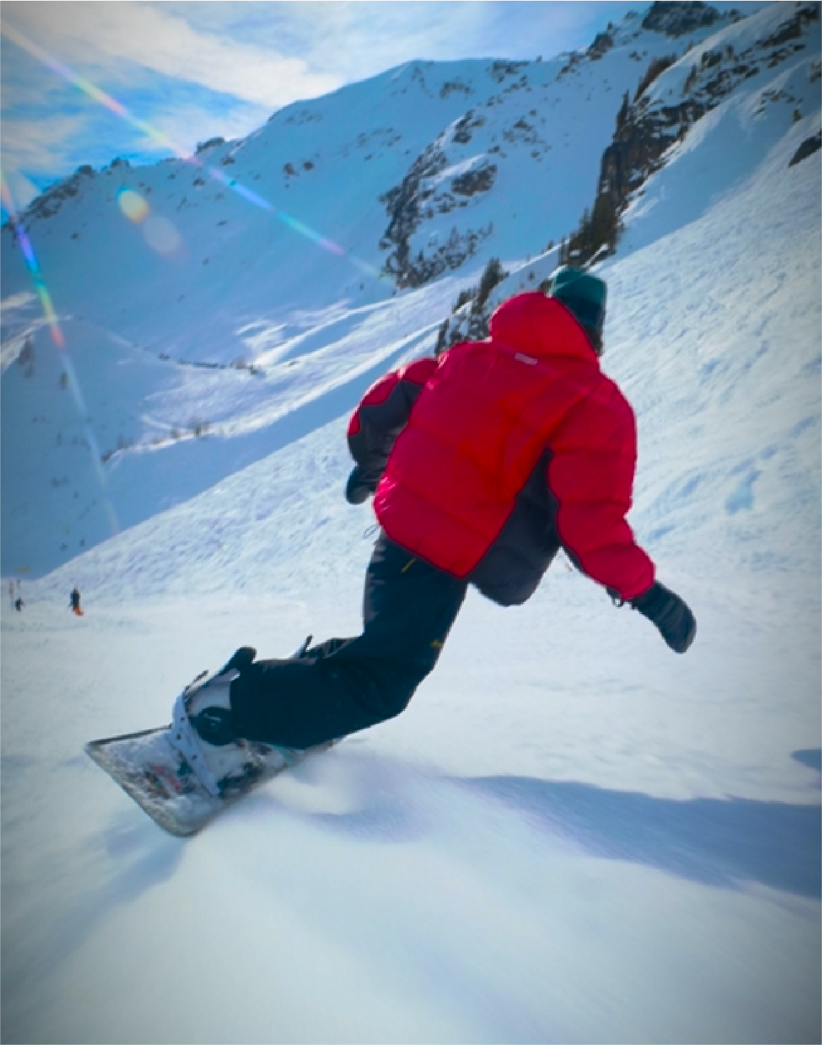 Descente en snowboard à Chamonix-Mont-Blanc avec Terence et Noé.